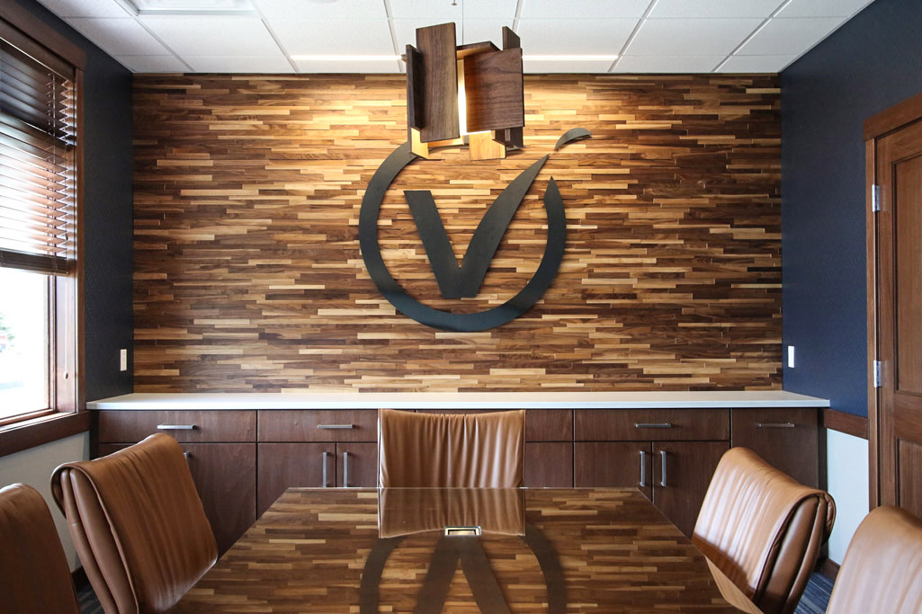 The new Vision Bank in West Fargo was designed to be an updated version of their existing locations with our primary focus on bringing their brand to light. Converted from an existing funeral home, we efficiently reworked the interior spaces and made adjustments to the exterior to properly function as a financial institute. We created an open office layout, private offices, and multiple meeting spaces that reflected their corporate image using both artificial and natural lighting, signage, and materials. We designed a large break room perfect for entertaining and large group events with a connected outdoor patio.